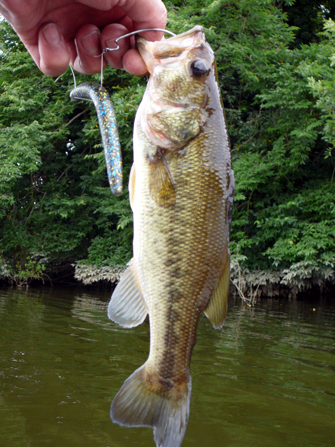 強引に手前に引っ張り出してきて釣れたのが、また×2 20数センチの小バス・・・・・