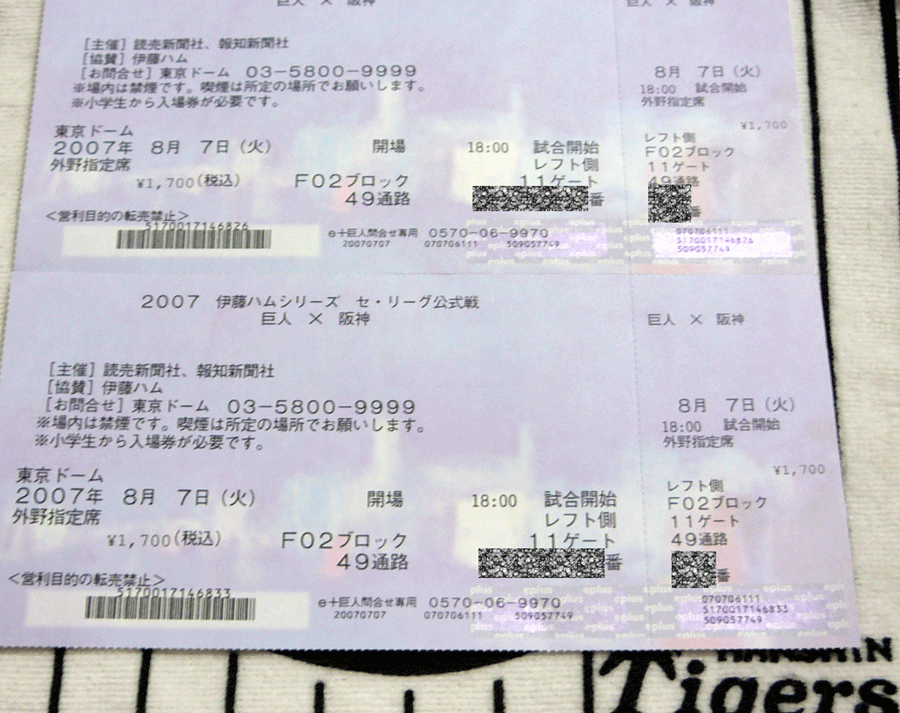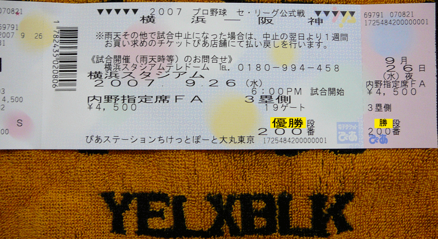 で購入したのが内野FA指定の?列200番通路側キタ━━━(゚∀゚).━━━!!!GET~~~~