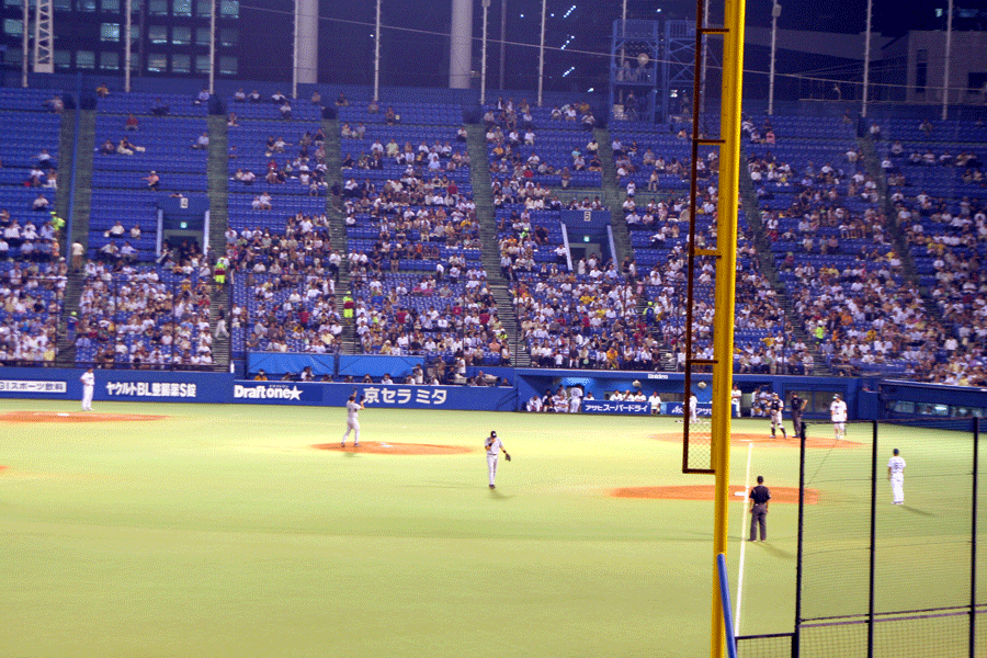 しかし平日にも関わらずレフトスタンドはこの大盛況。7回裏に友達と雑談してて戻ったら8回に代打・濱中!(今日は濱中のユニを着てた)せいか席に、戻ったら周りの人たちから早く!早く!濱中だよ!と声が掛かるほど(笑)