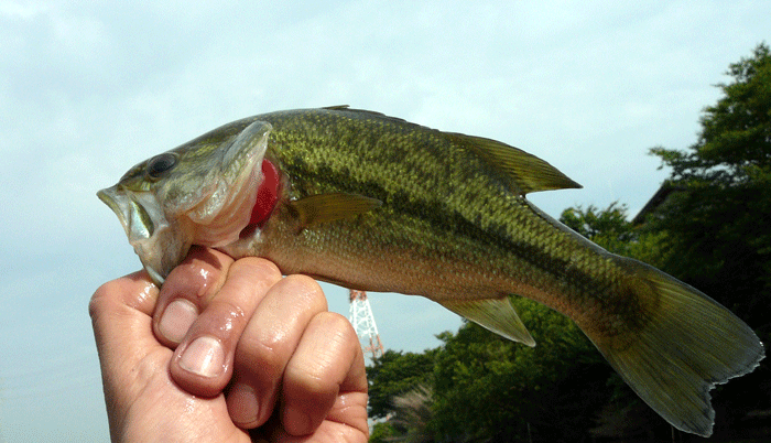 後から解ったのだが、ルアーに対してバスが小さくて先だけ咥えてるから乗らないんだと。