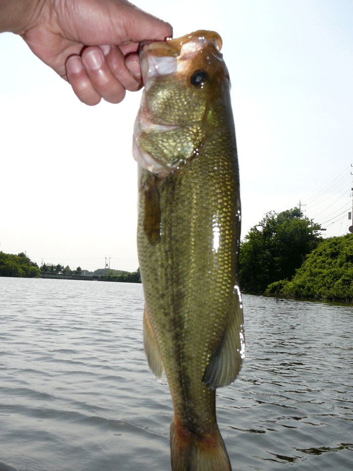 狙ってここに居るはずと投げて数十投、やっとバスらしいアタリが!!!