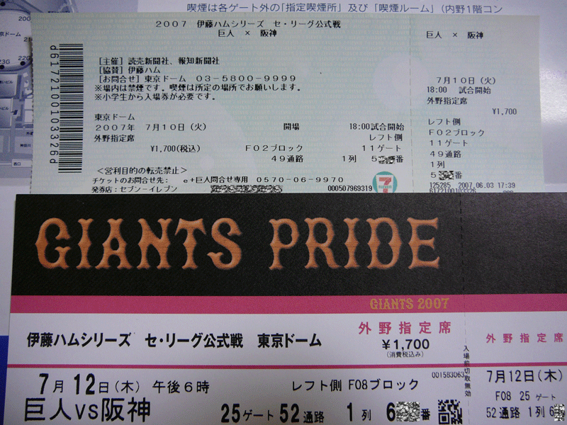 今日も最前列での観戦、座席は火曜日と違ってセンター寄りの1列655番。通路から遠いかと思いきや通路まで一席と最高の座席!