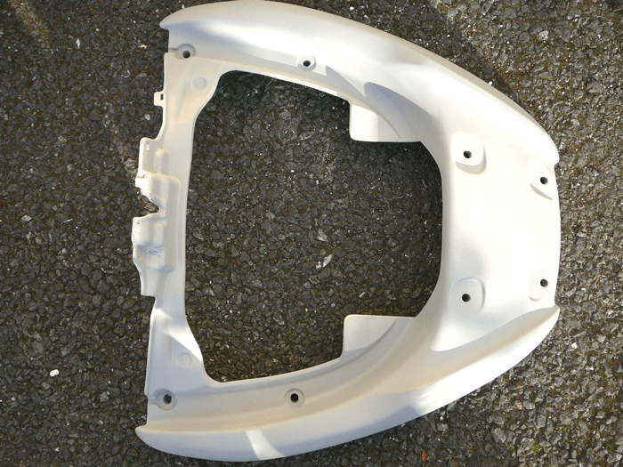 リアのスポイラー(パーツカタログ参照)をヤスリがけ。キュイーンと電動工具を使い下地処理。最終仕上げは手掛けで。ゴシゴシ×2